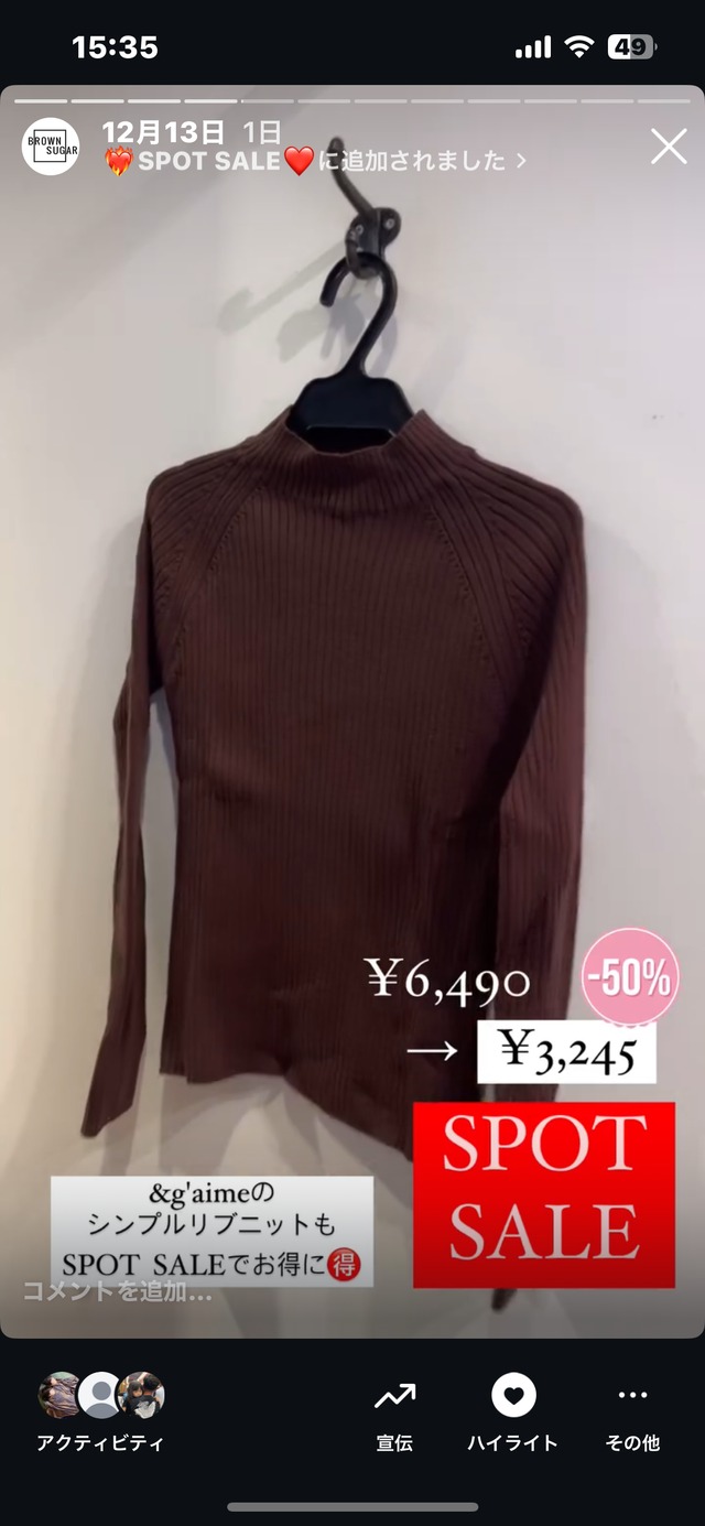 &g'aime リブニット ブラウン お買い上げありがとうございます☺︎