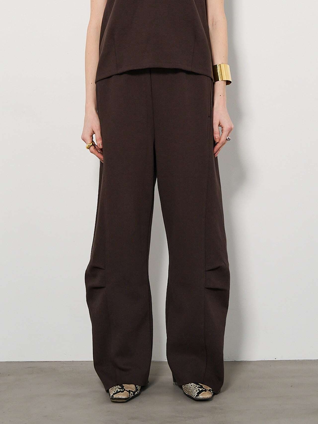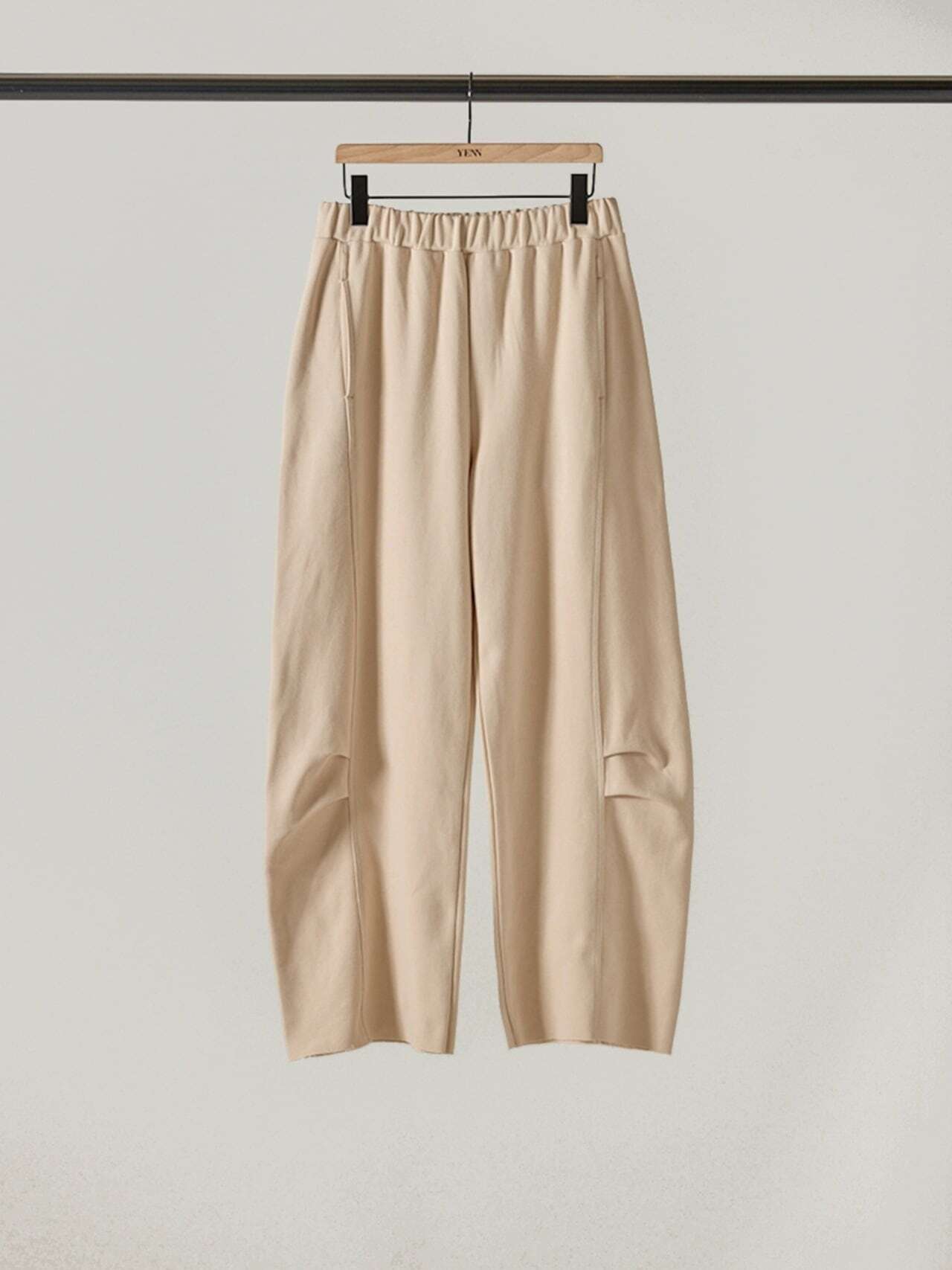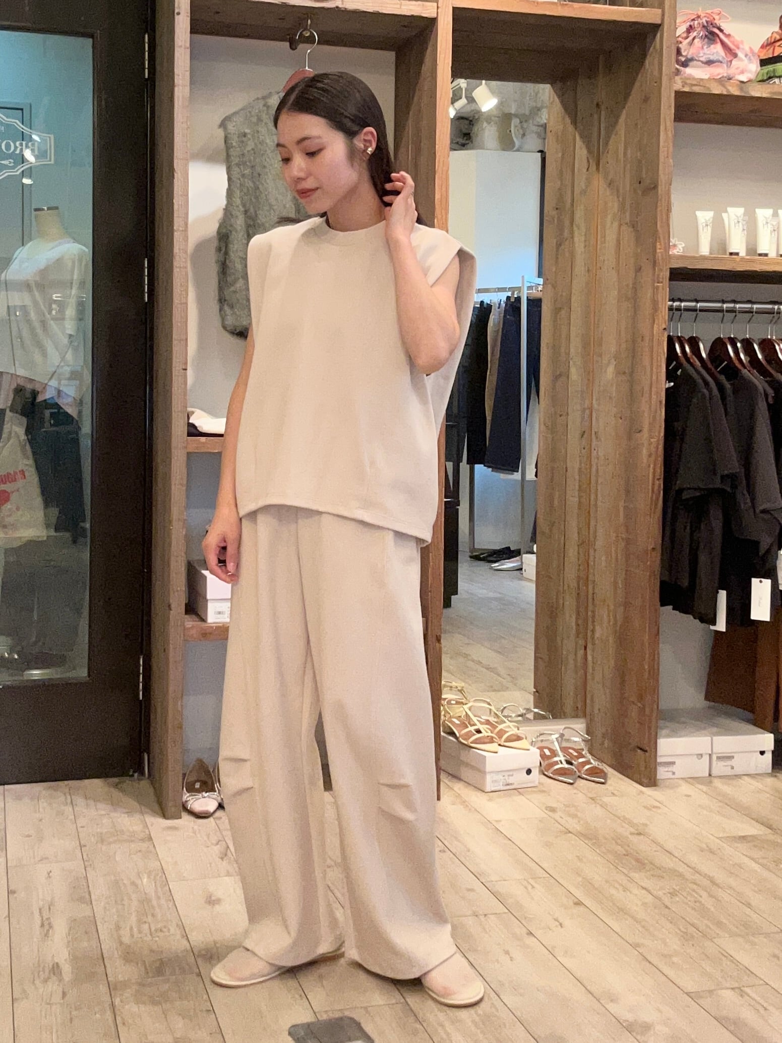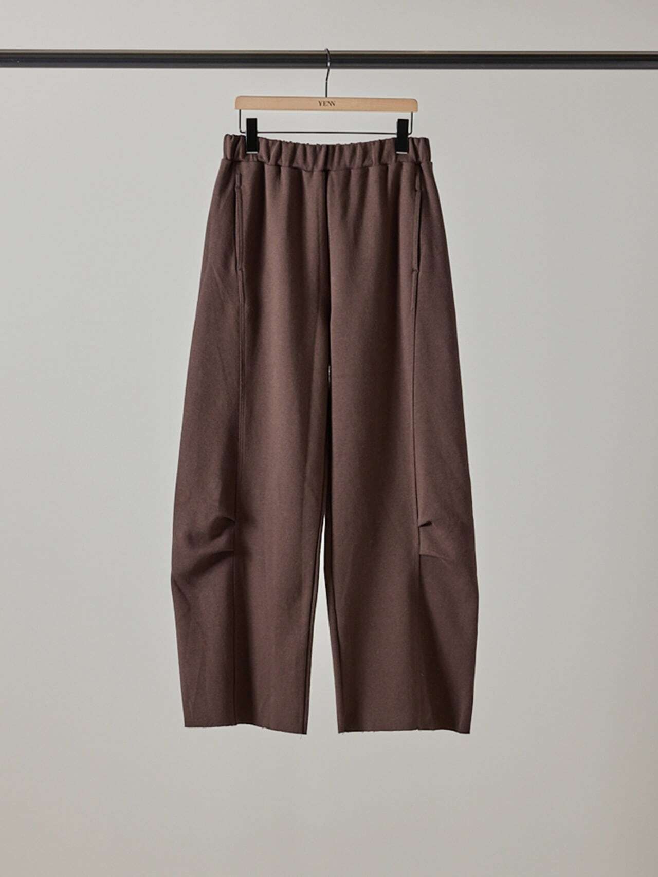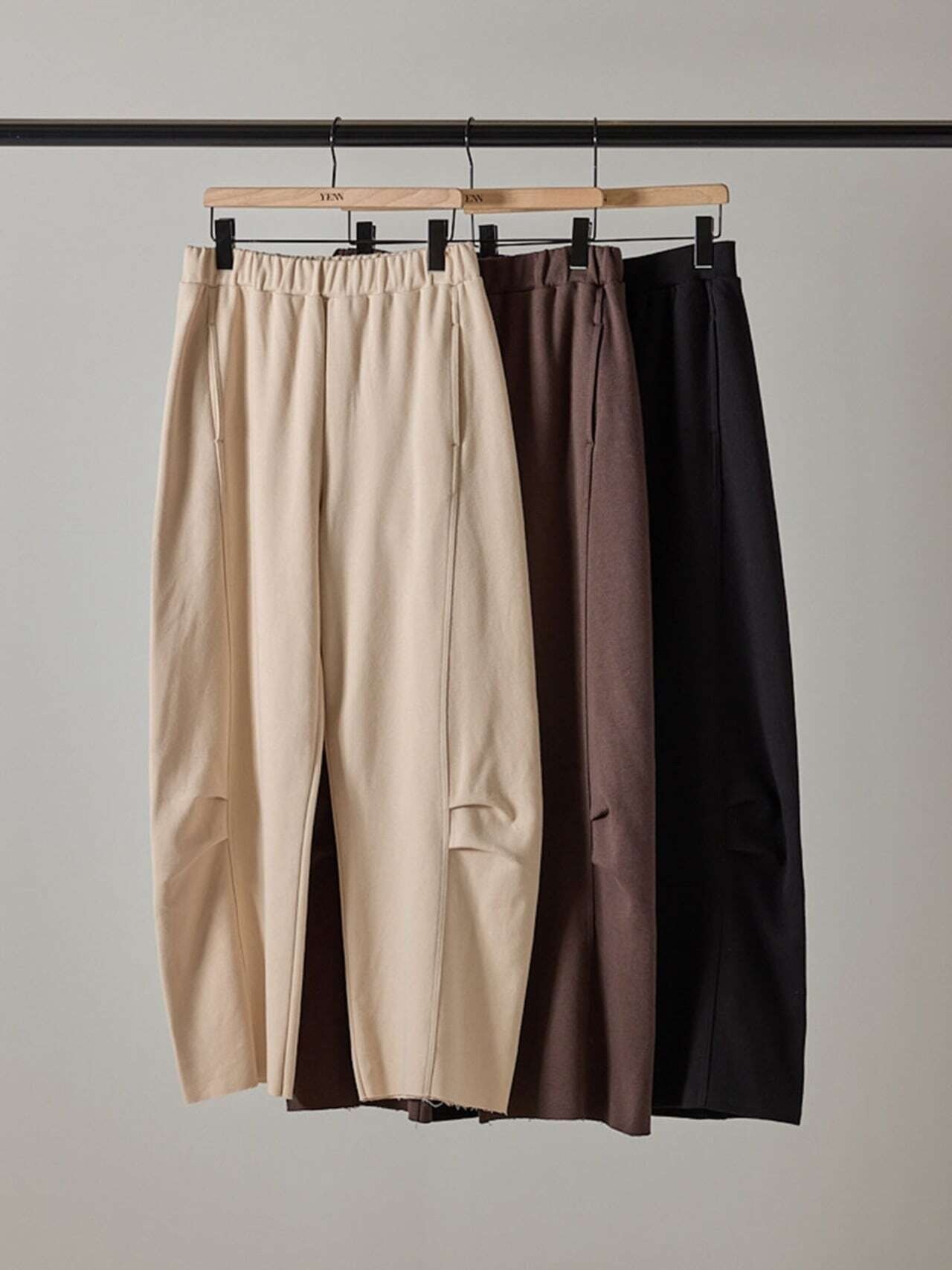膝に入れたタックで作るカーブシルエットがモードな雰囲気をプラス。