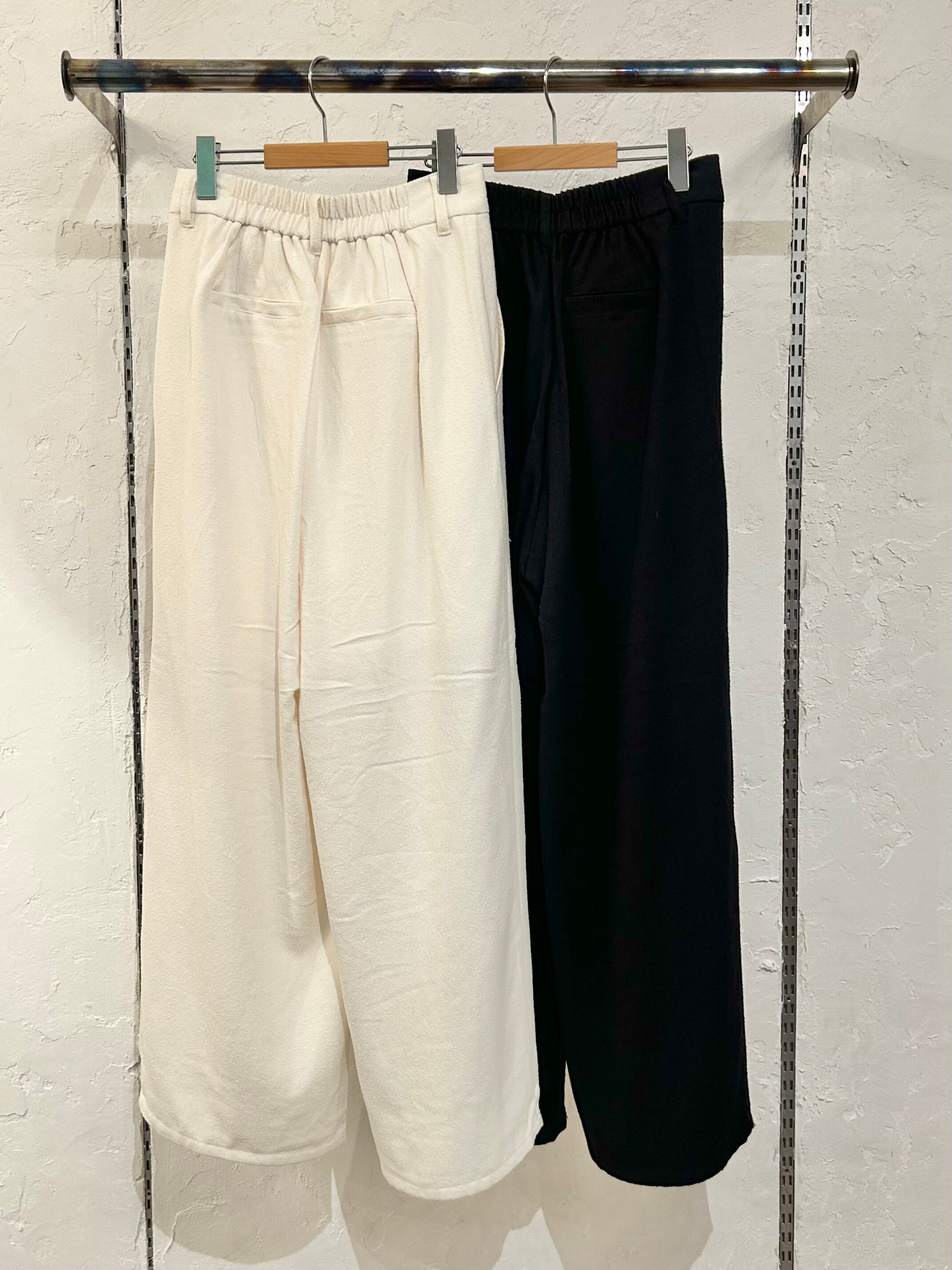 上品な起毛ループ素材で、スタイルアップに見せてくれるタックデザイン!