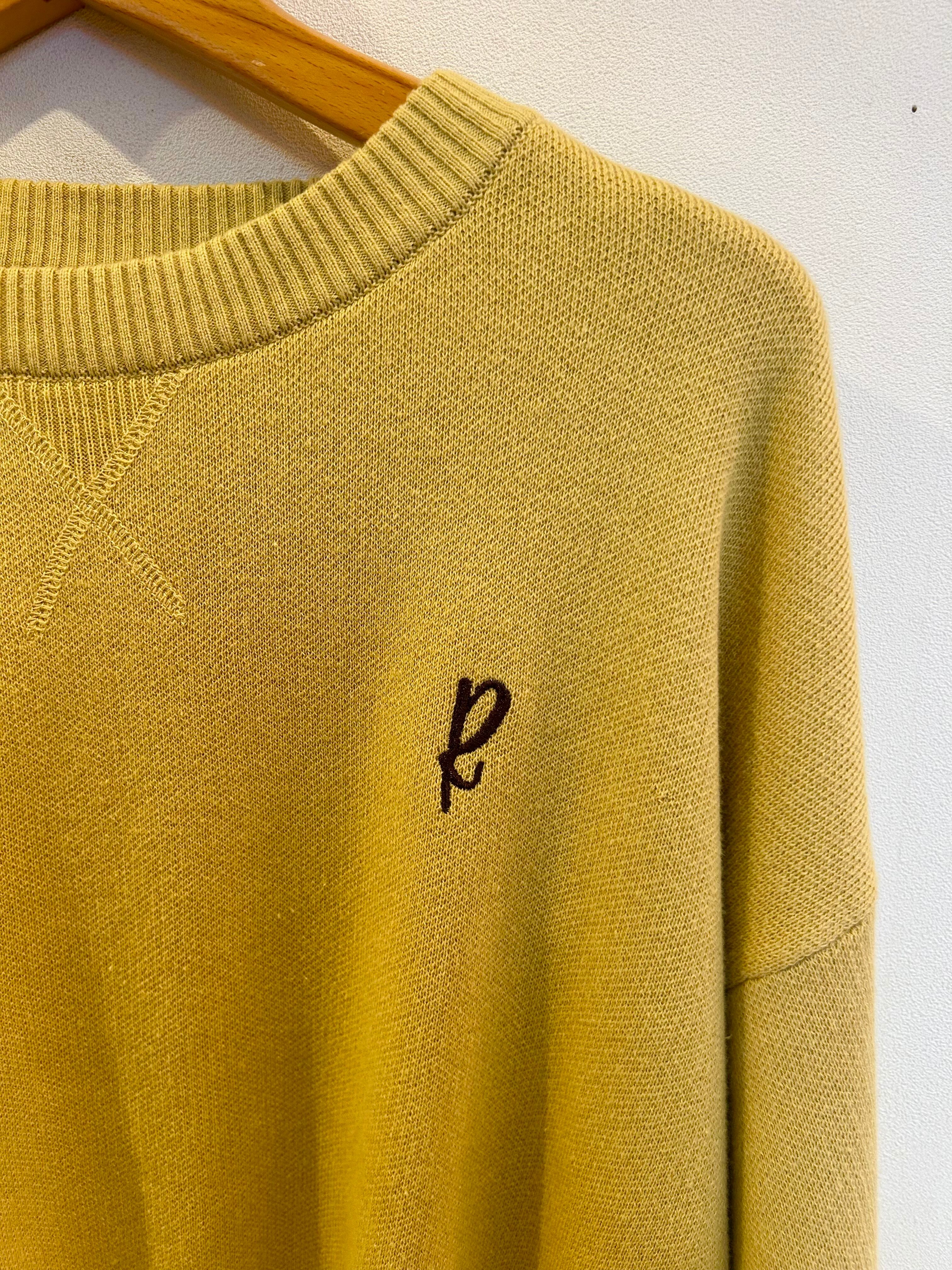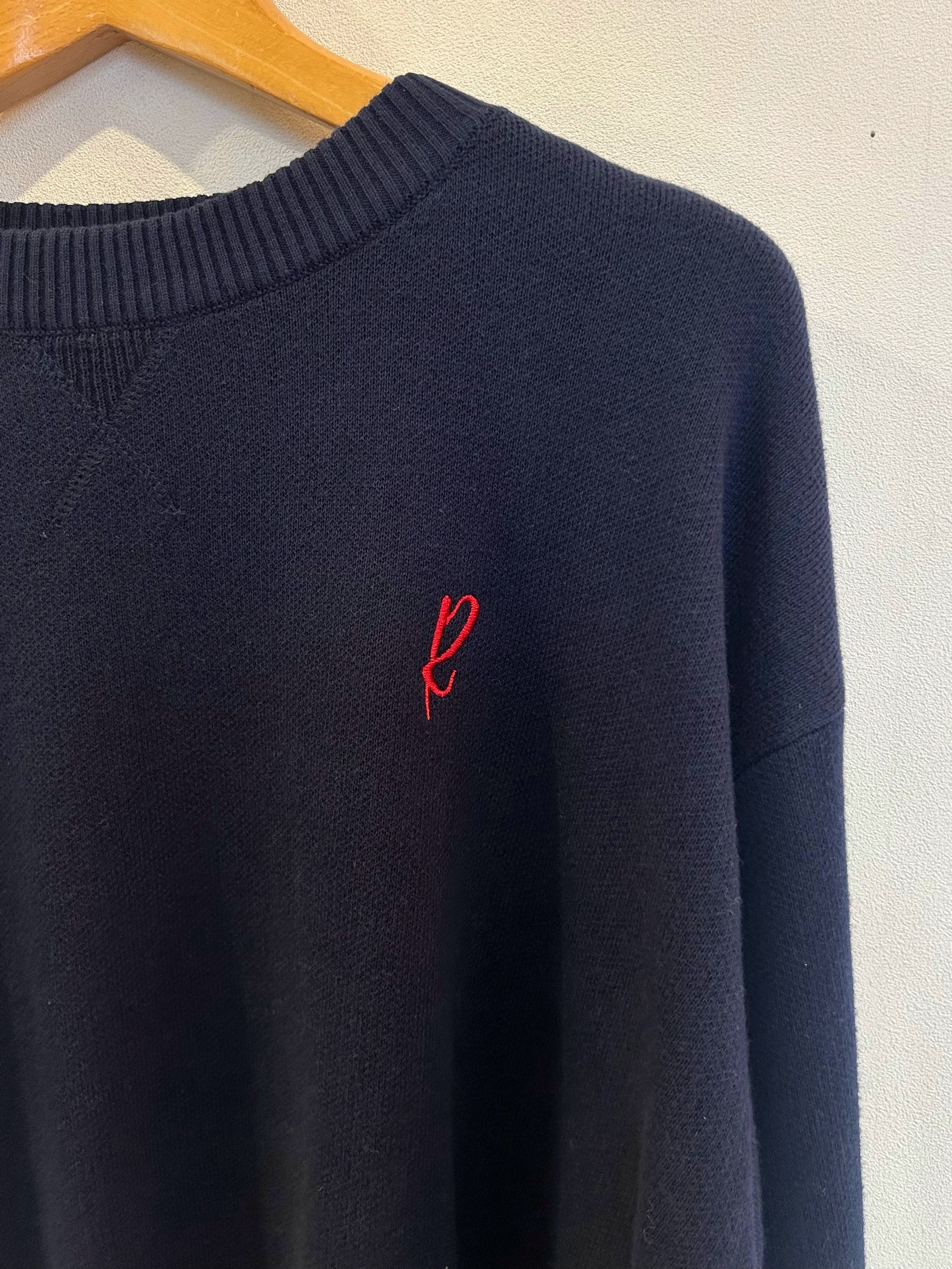 スウェットの着やすさとニットの温かみが程よく、良い抜け感のある一枚。