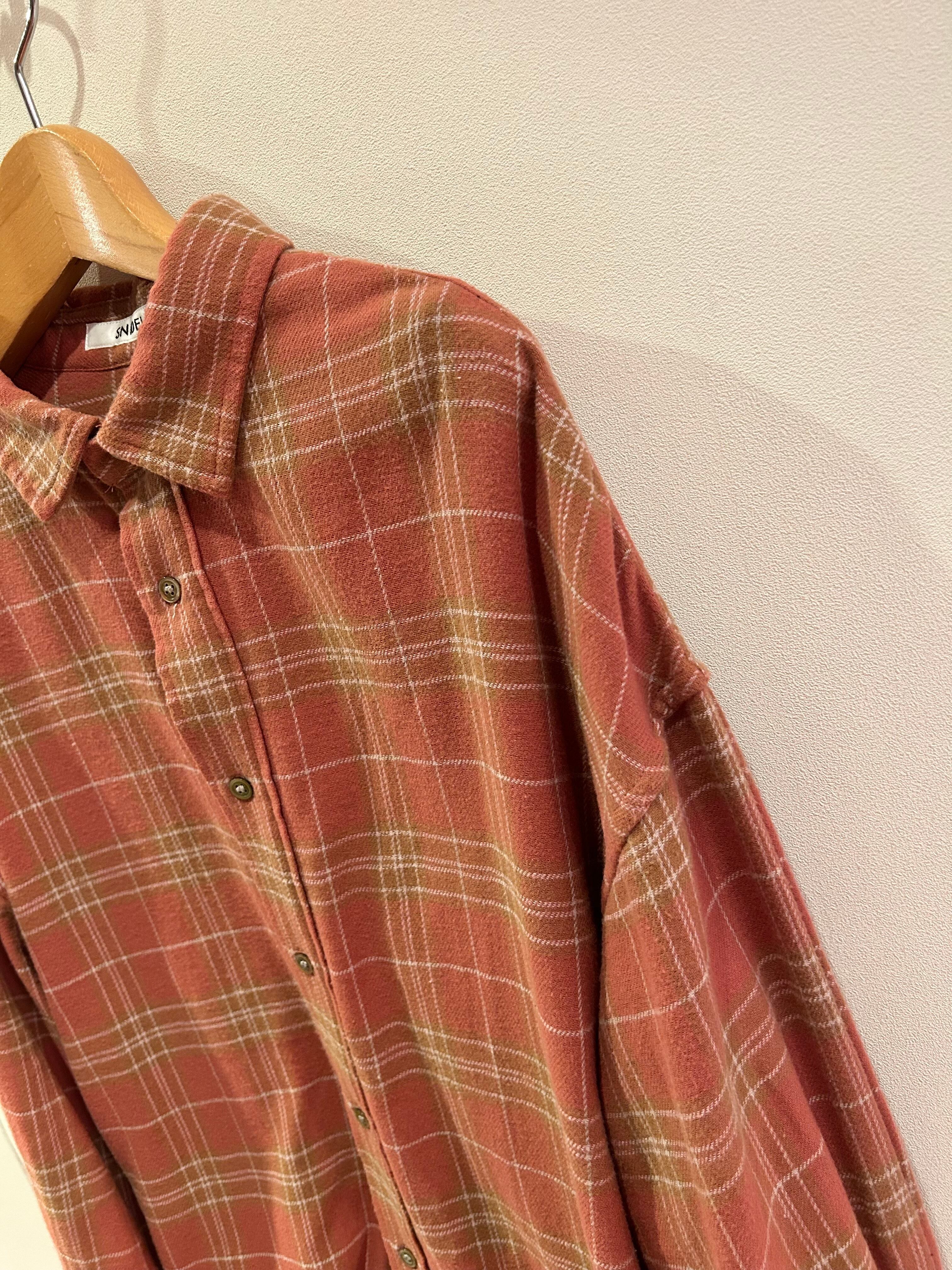 起毛感のあるトレンドなネルシャツ。優しい肌触りとSNIDELらしい可愛い色味のピンクが、コーデをぱっと明るくさせてくれます。ニットやスウェット合わせ、羽織としても重宝する一枚です。