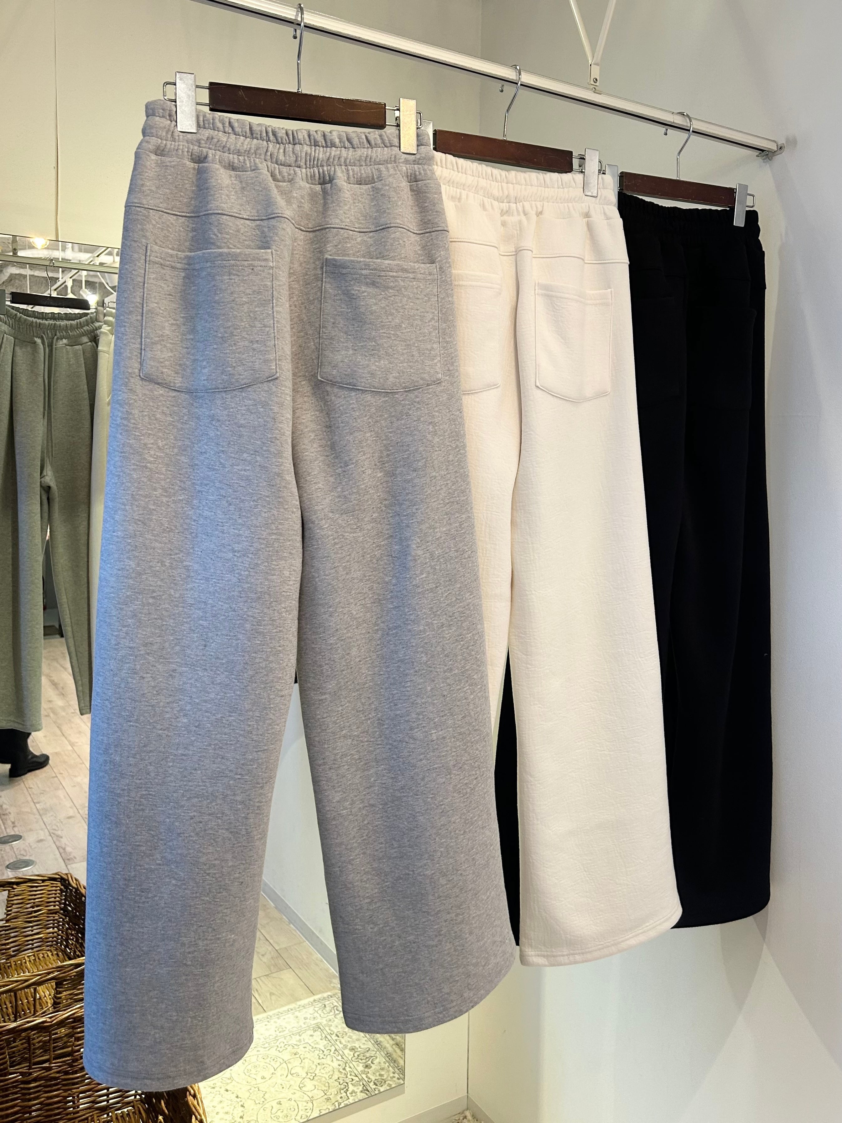 軽やかな穿き心地が魅力のポンチタックワイドパンツで、ポリエステル×ポリウレタン素材で伸縮性があり、ウエストオールゴム仕様でストレスフリーに着用していただけます。