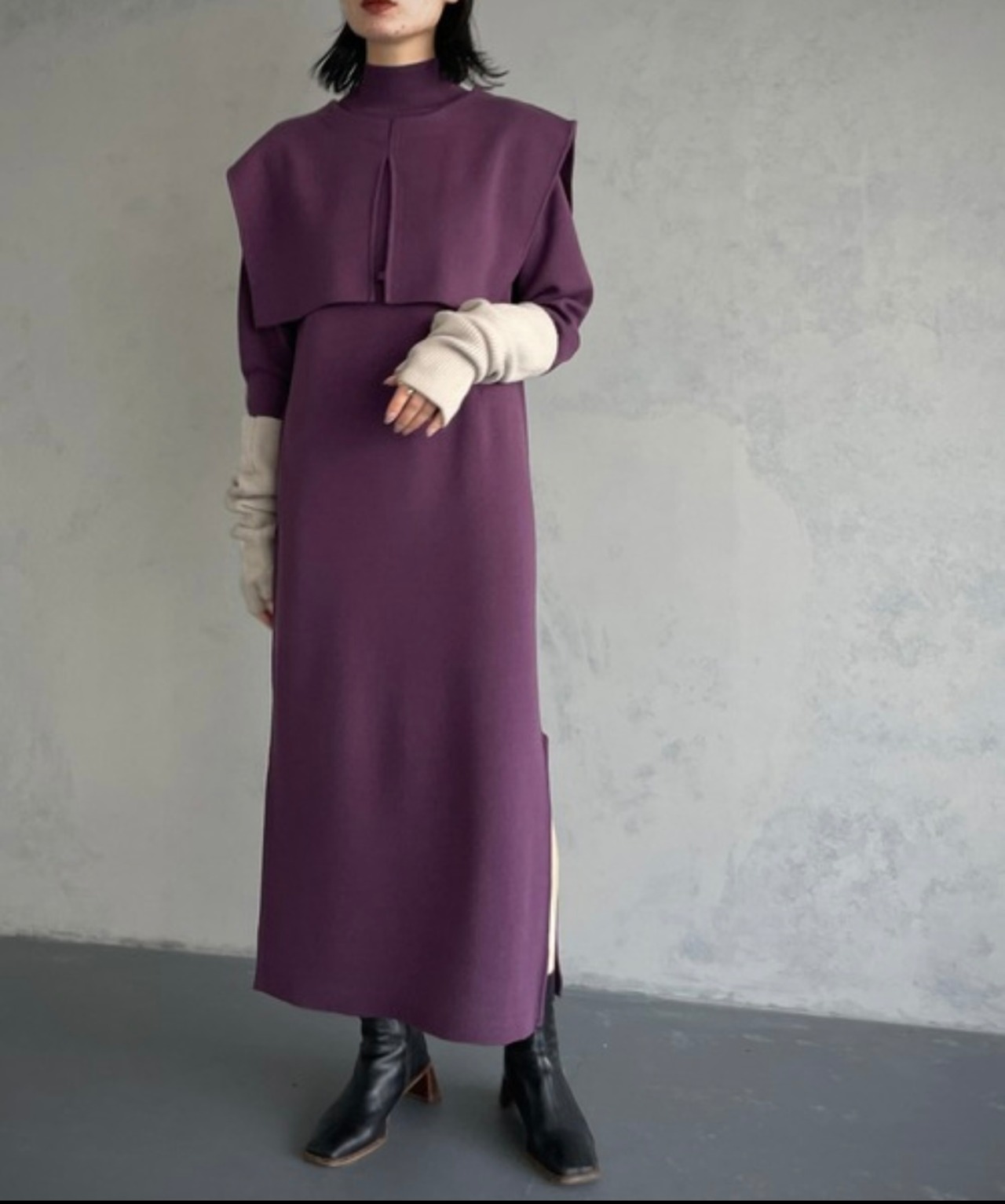 レイヤードスタイルが楽しめるニットワンピース。ケープは取り外し可能なので、単品使いでもコーディネートできます。
