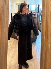 ショートな丈感ですが、お洋服とのバランスが取りやすい大人可愛く着用いただけます。