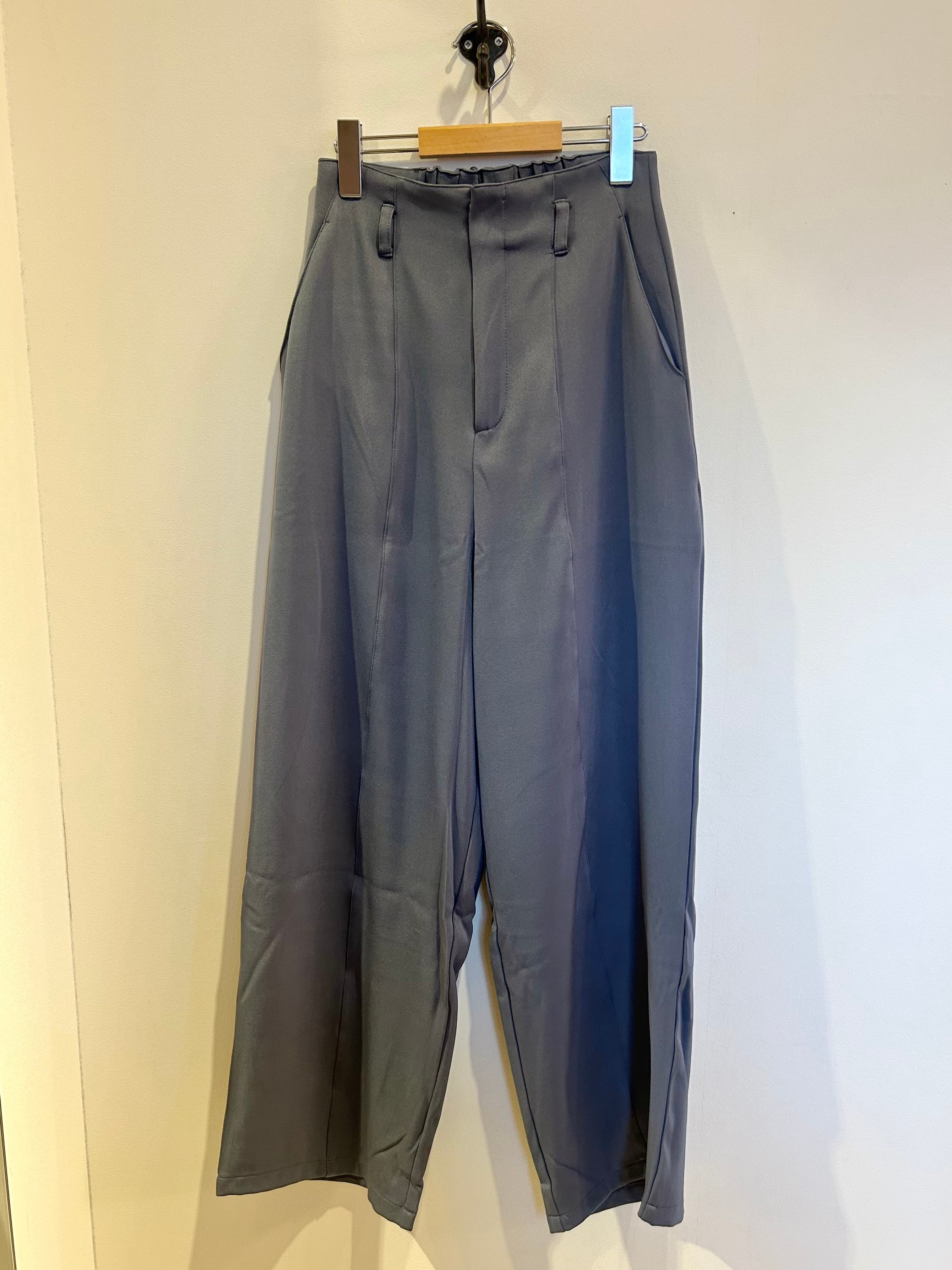 落ち着いたトーンのブルーカラー。&g'aimeらしいモードさのあるワイドパンツです。