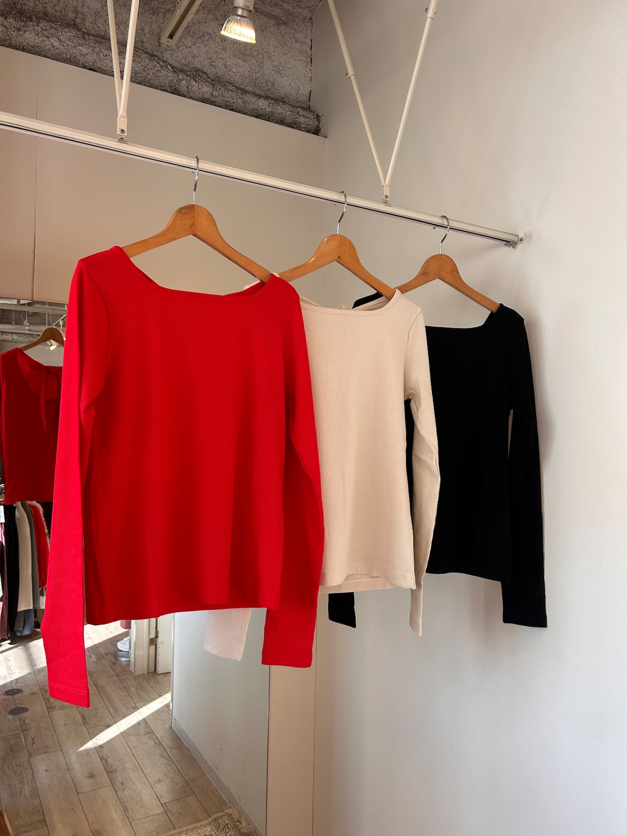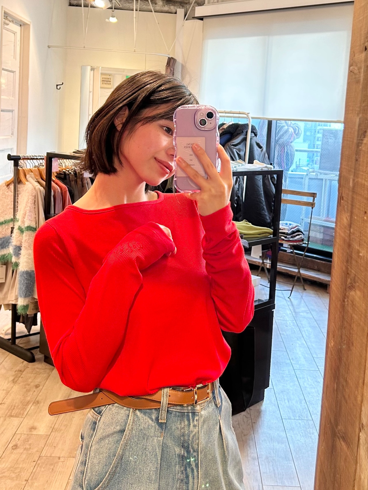 さりげないラメが織り込まれたリブ素材が、動くたびにほんのりと輝くロングスリーブTシャツ。