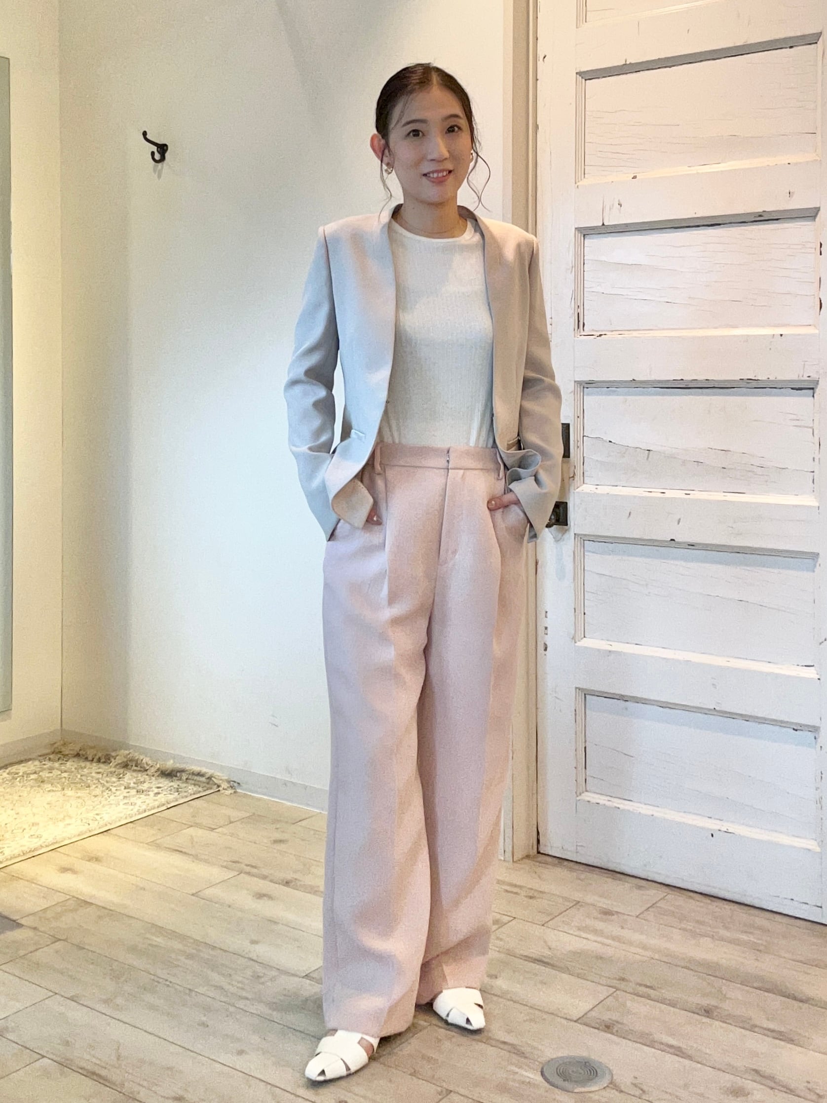 リネンライクな素材を使用した、春にぴったりのストレートパンツ。