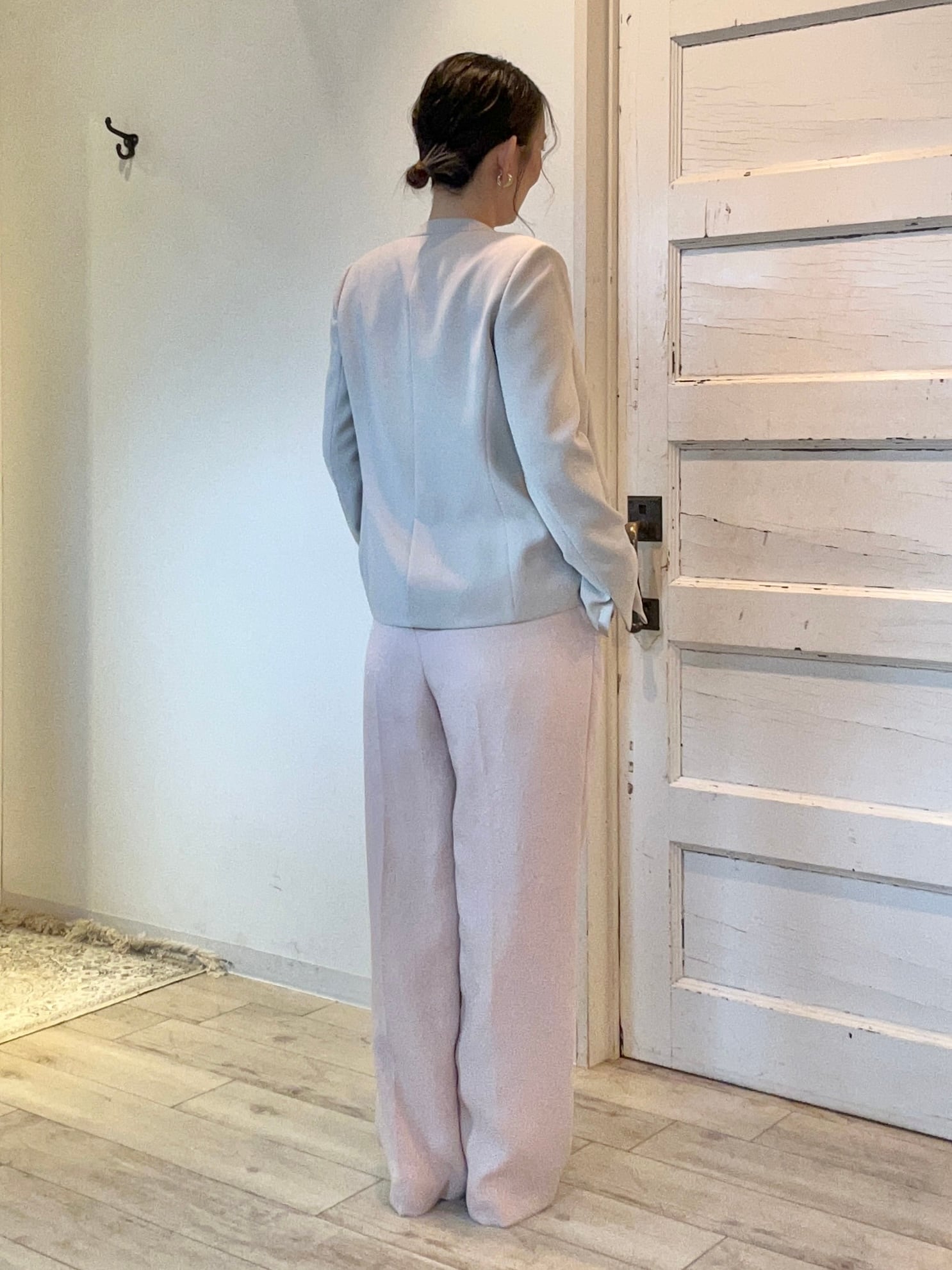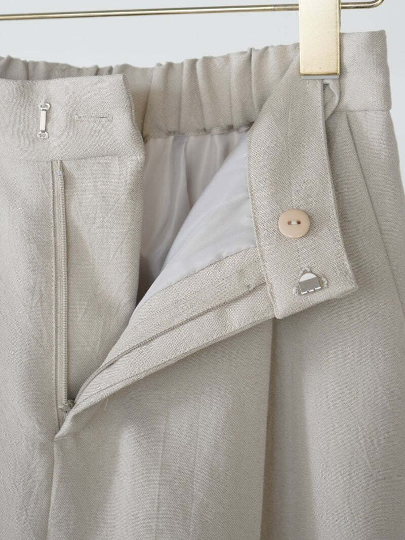 ほどよくハリのある素材感で、脚のラインを拾わず美しいシルエットをキープ。