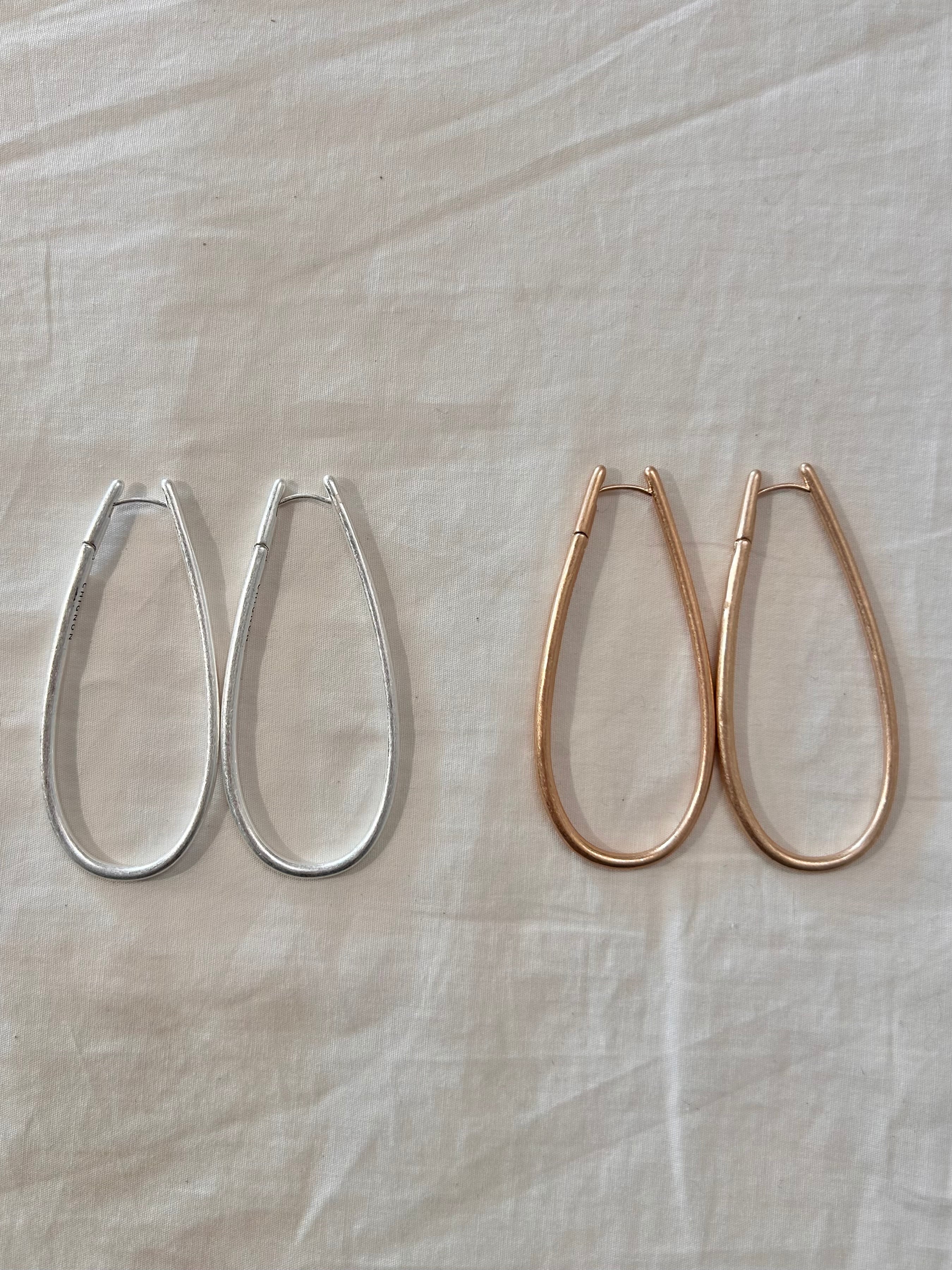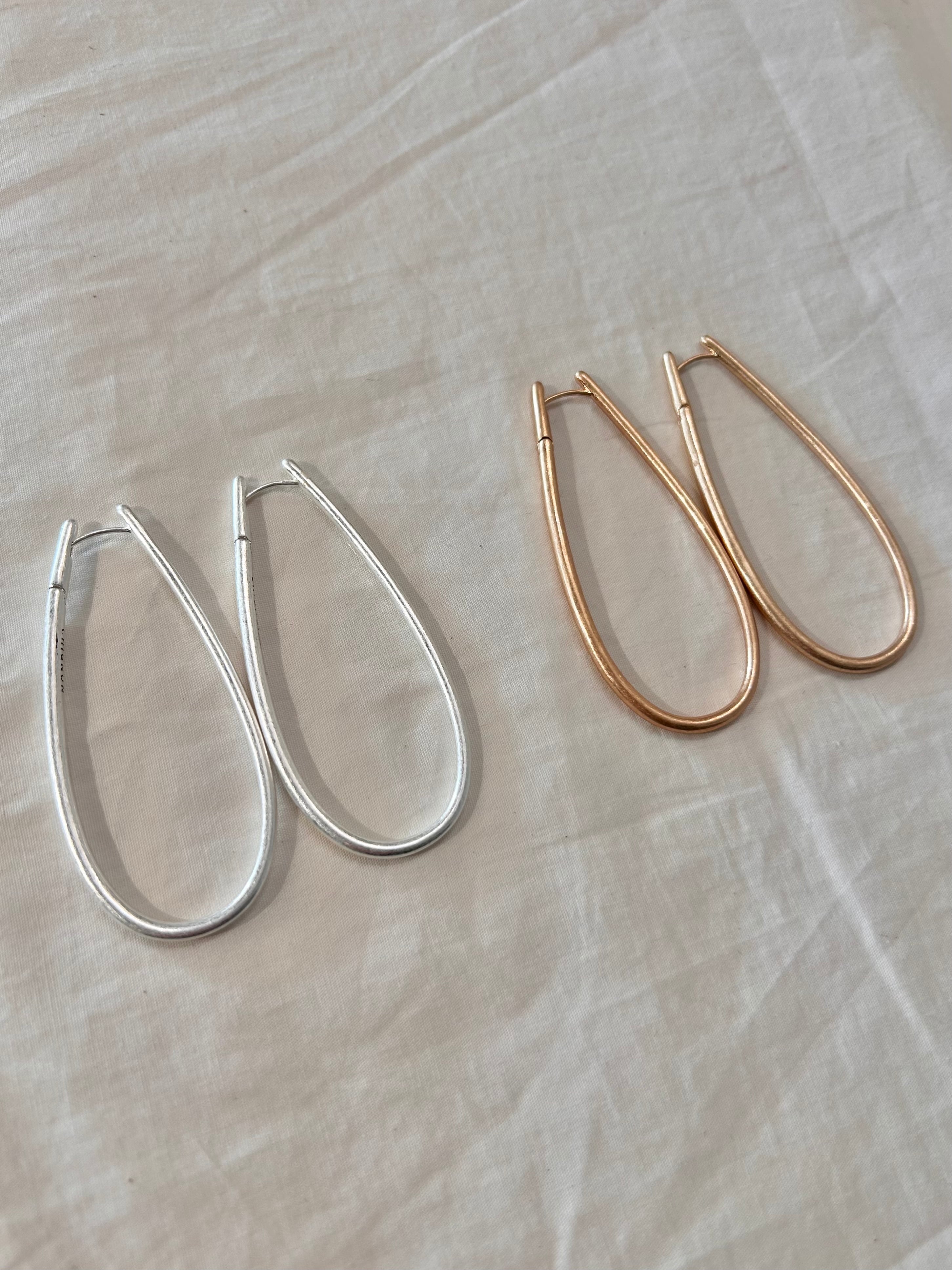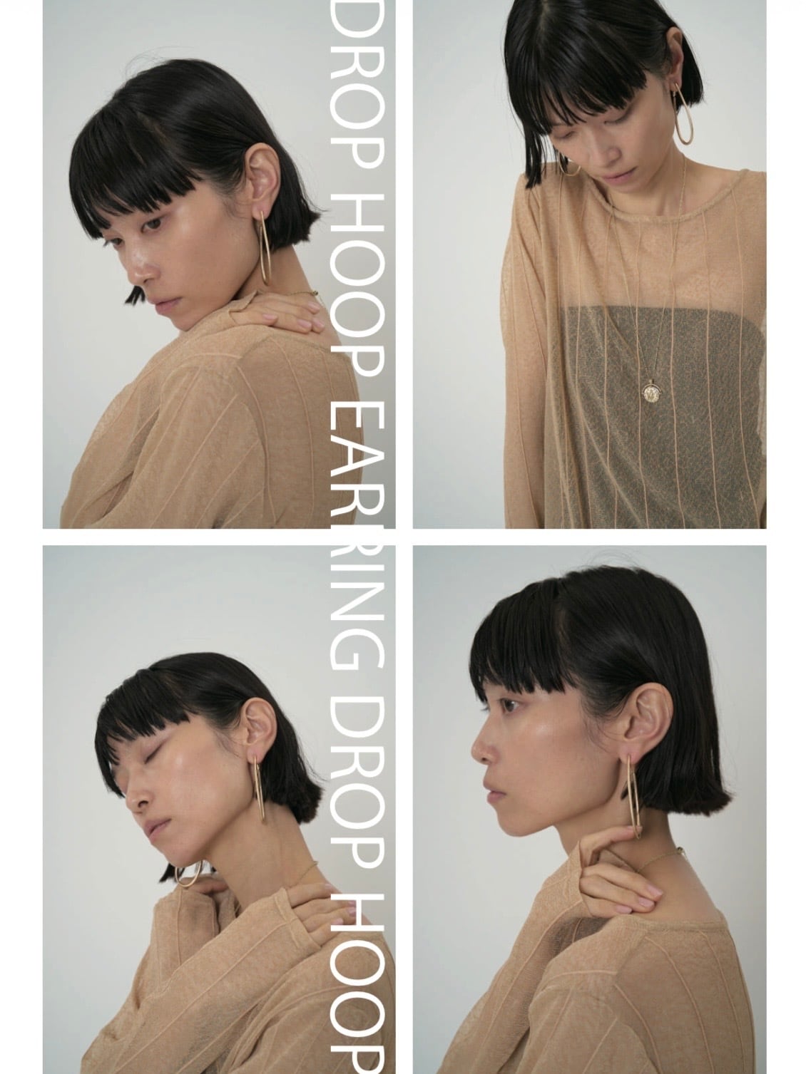 ドロップ型の大振りフープピアスは、後ろから見てもシンプルで無駄のない仕様にしています。