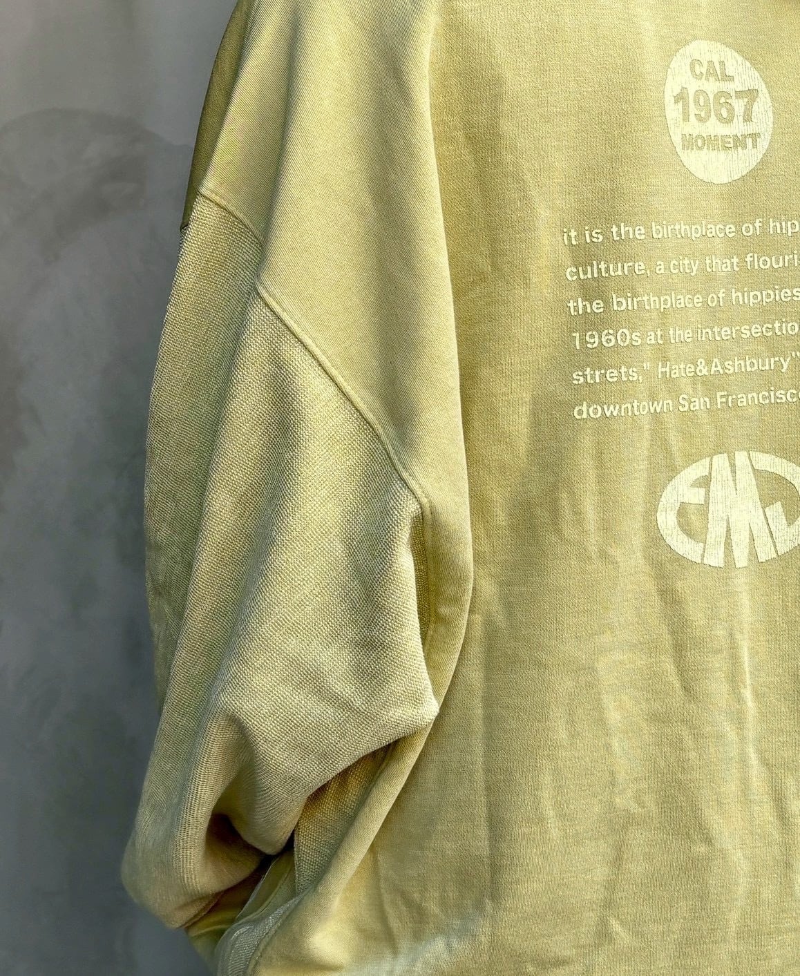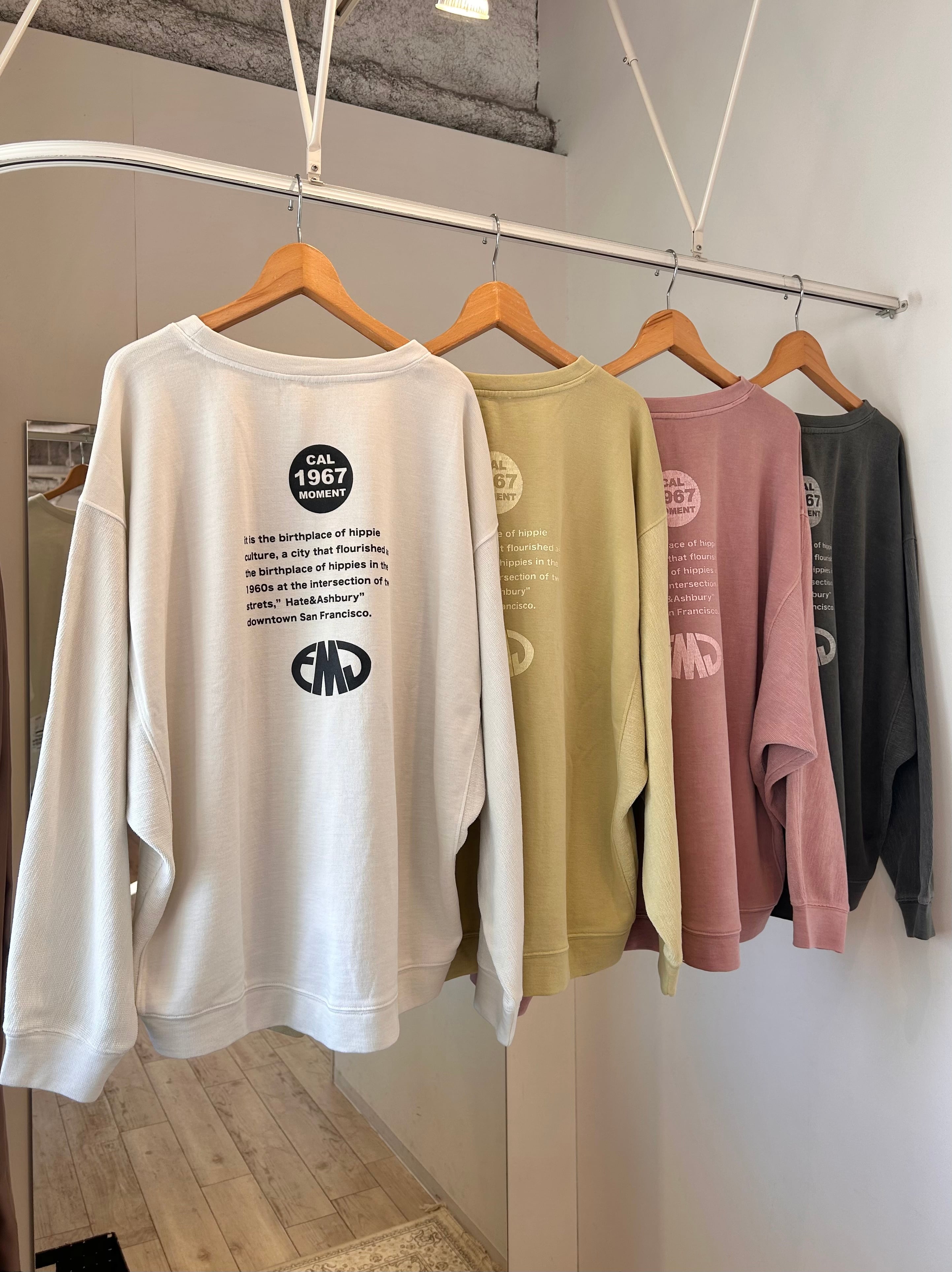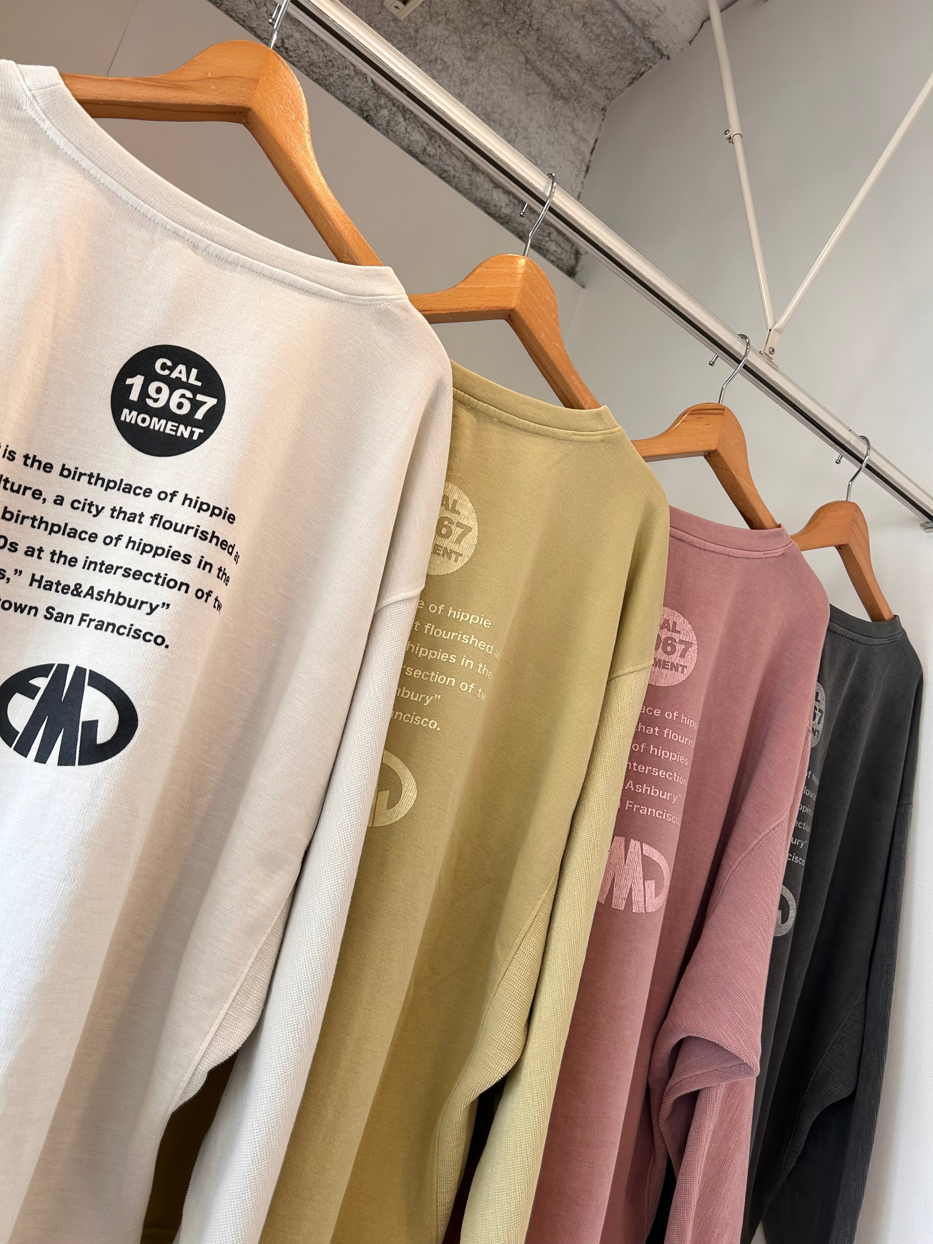 異素材で表情を変えたデザインのドルマンスリーブ型のロンTです。スウェットよりやや薄い素材ですので長いシーズン着ていただけます。前の裾にブランドパッチを付け、縦に並んだバックプリントも大人の女性にオススメです。