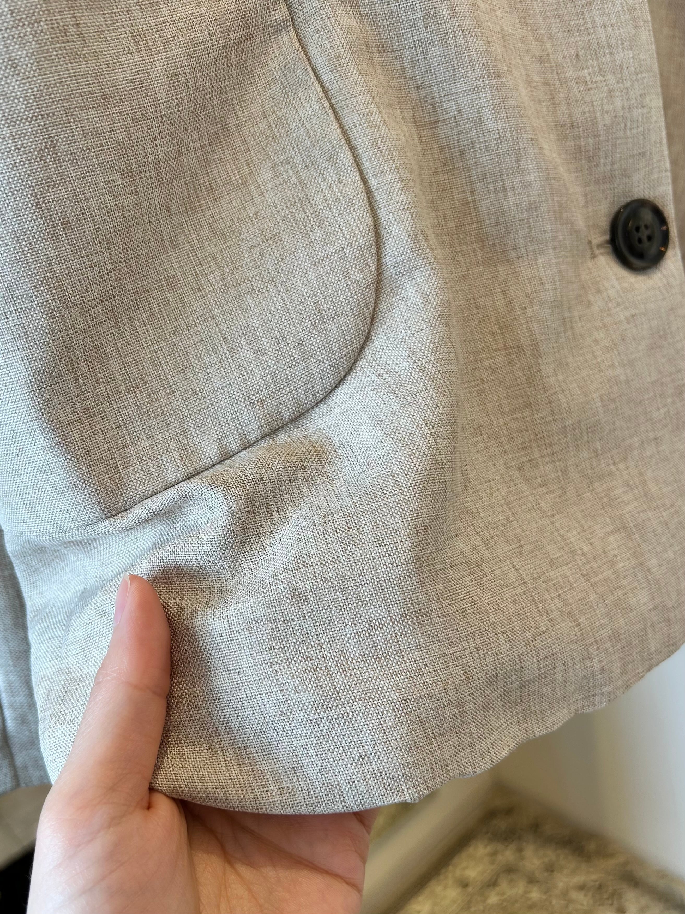 スラックスやスカート、デニムと幅広く合わせやすく、程よくオーバーなサイズ感。
