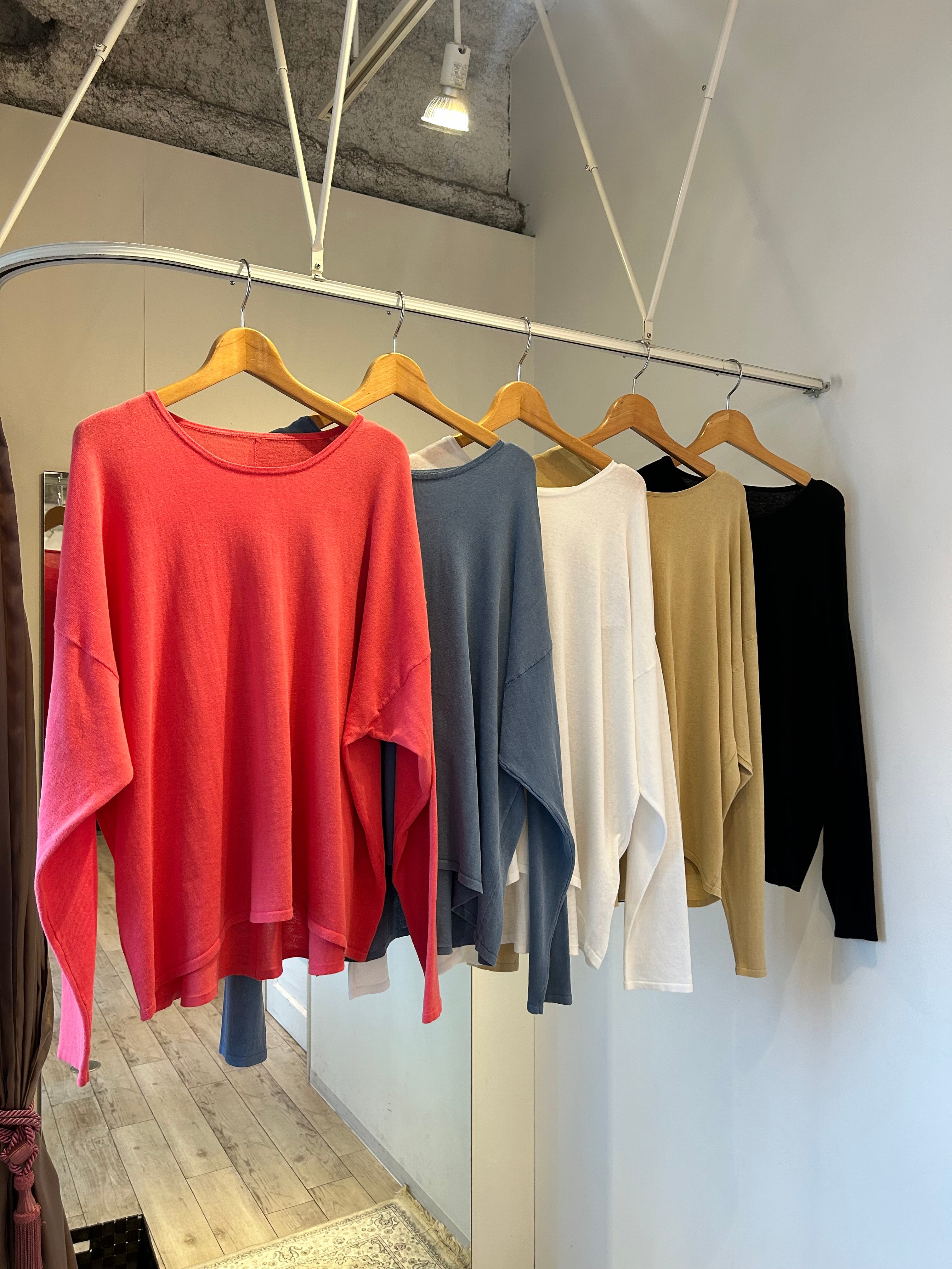さらっとしたコットンの肌触りで、天竺編み薄手ニットです。