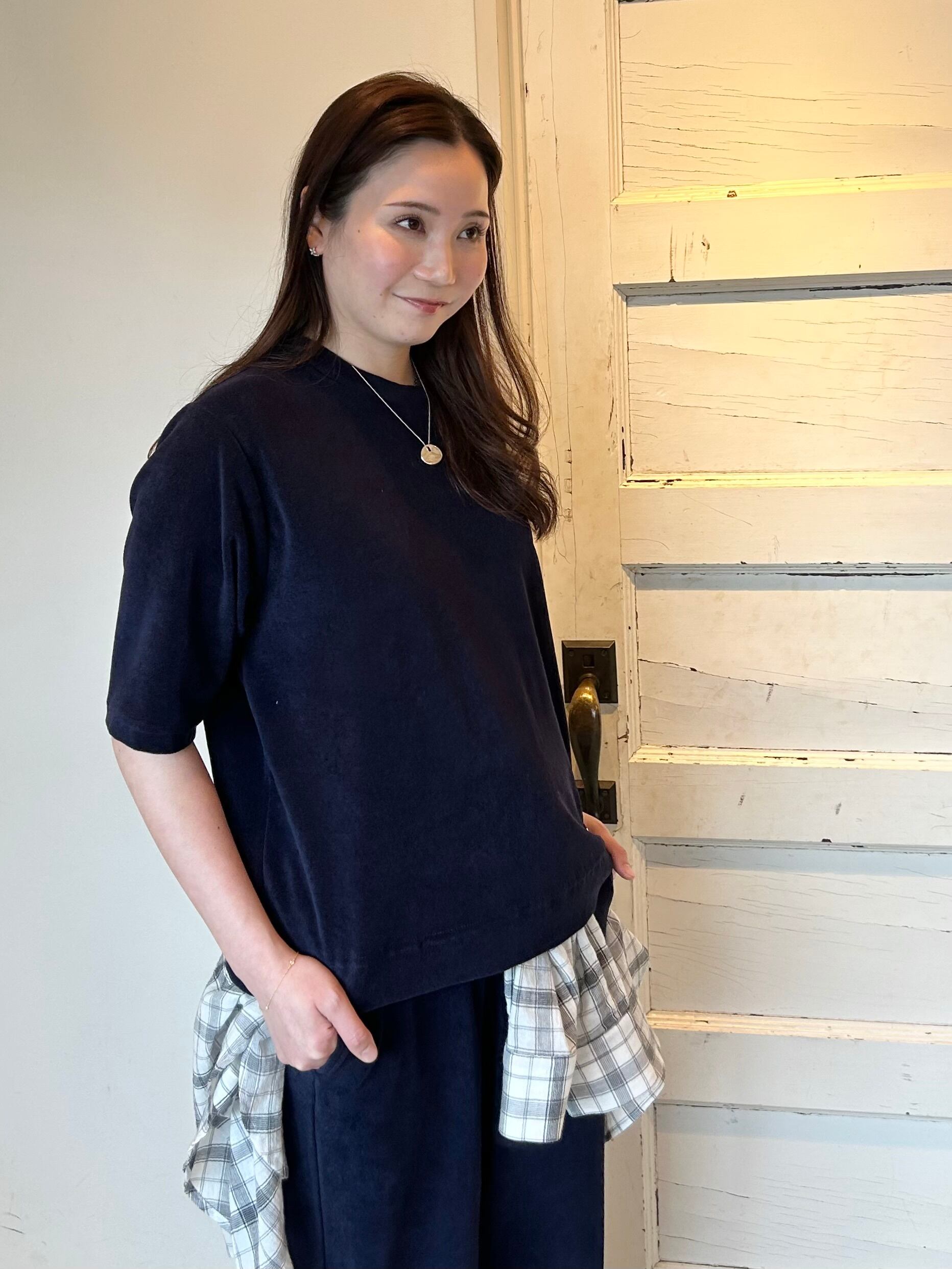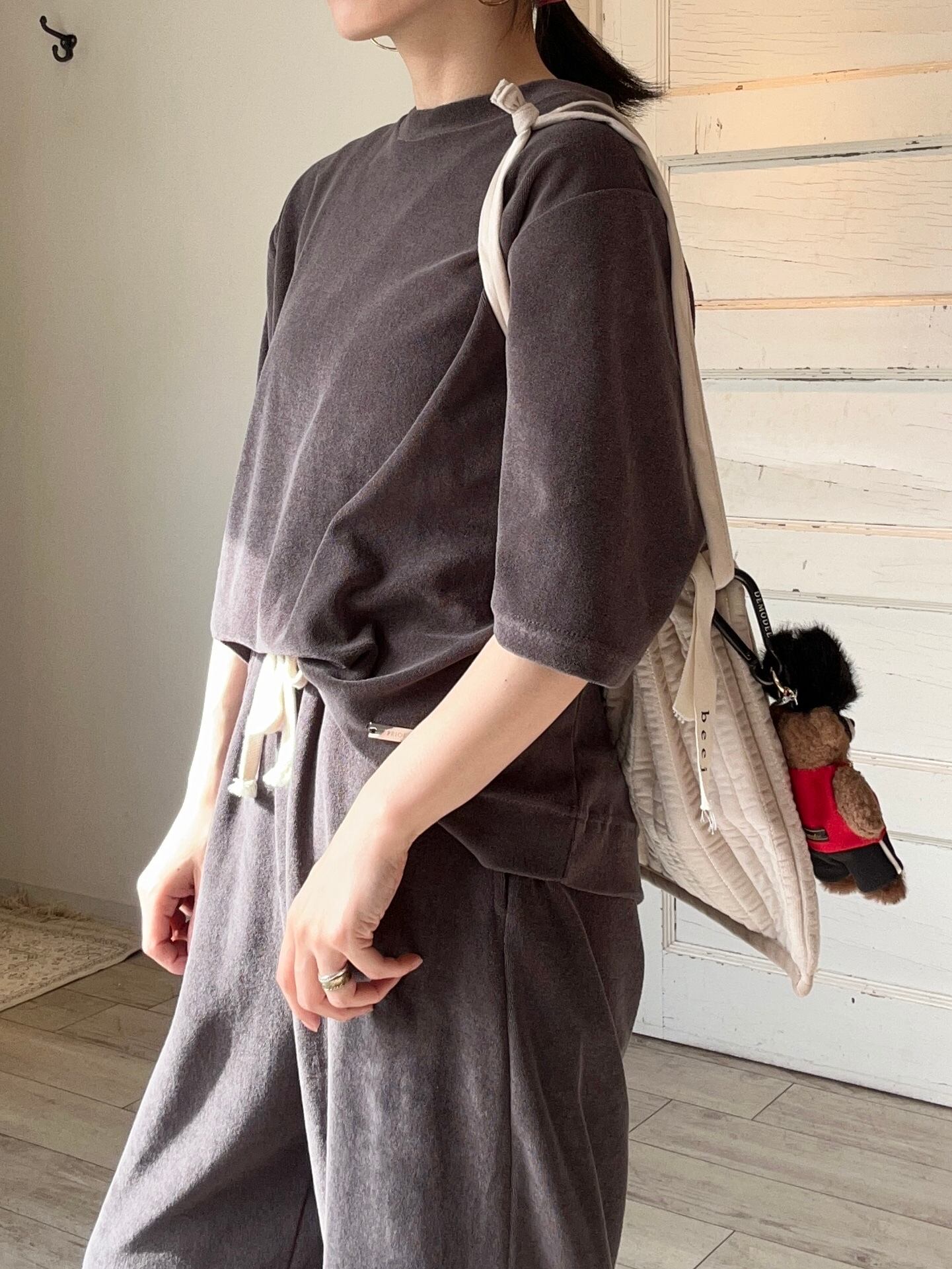コットン100%のパイル素材で吸水性が高く、肌触り優しいリラックスTee。