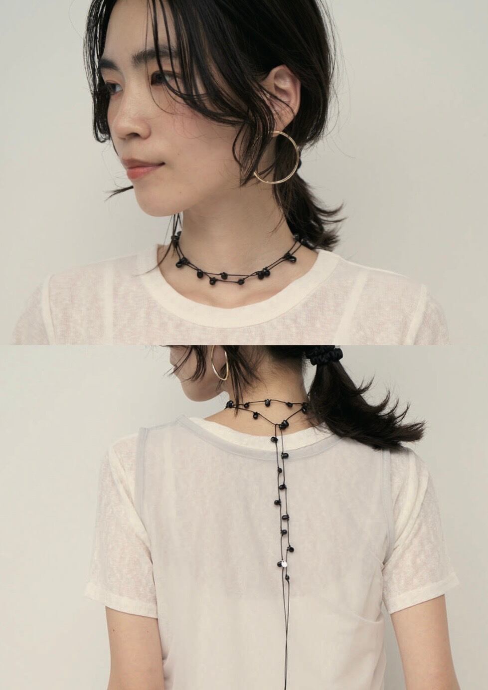 キャッチはオニキスの他に、メタルの円盤真鍮キャッチをご用意しました。高見えする2種類のキャッチなので着用時、後ろからの見え方も◎